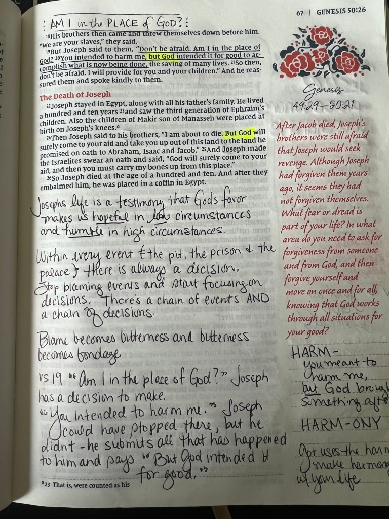 2. BUT GOD… this is the pinnacle of this story for me. At the very end of the story the brothers are fearing retribution. And with good reason, right? Geez! Those brothers were horrible! They are begging for Joseph’s forgiveness (and actually if you read it they’re really trying to trick him into forgiving them… old habits die I hard I guess) and Joseph says something so powerful. It makes me shiver every time I read it.