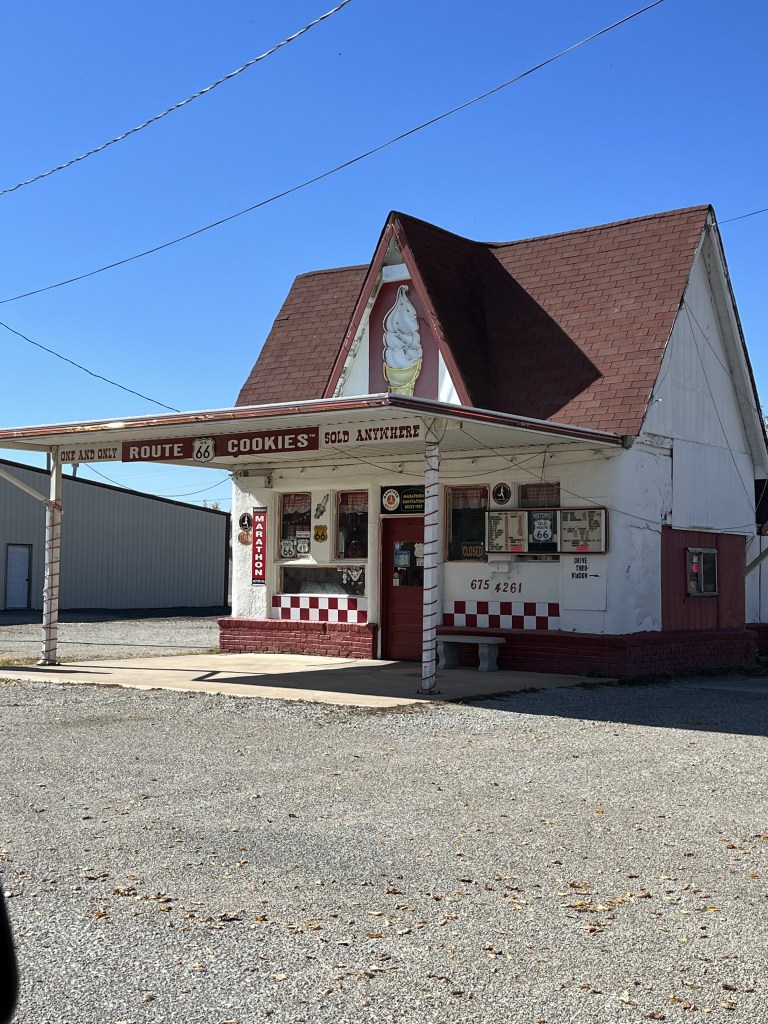 Galena, KS – Geared Curios in Galena, KS is a MUST stop. The owner is so friendly and he knows a LOT about the Mother Road. He gave us tons of information and recommendations. While we were in Galena we ate at a little Bistro that was located in a historic bank building. I recommend the french dip :).